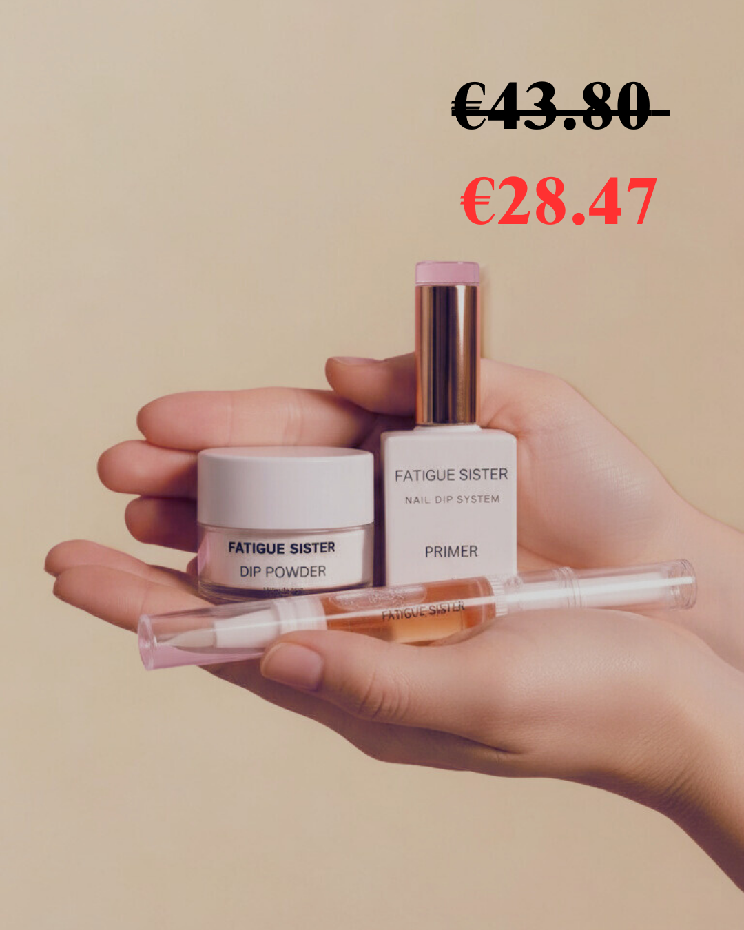 O Dip Nails Kit é o melhor amigo das tuas unhas: fortalece, embeleza e dura muito mais. Completo e fácil de usar, ele transforma unhas fracas em unhas fortes e cuidadas — sem as deixar pesadas. Perfeito para o dia a dia, para uma ocasião especial ou para dares às tuas unhas o tratamento que merecem.